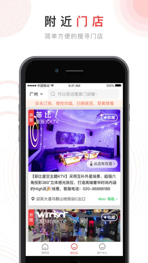 随时随地的房间查询,无论在哪里,附近的KTV房间信息都能清晰了解。