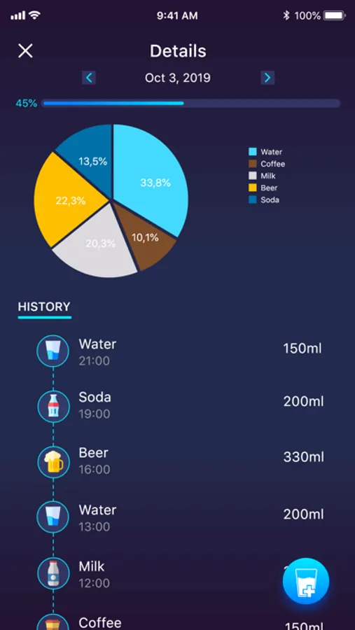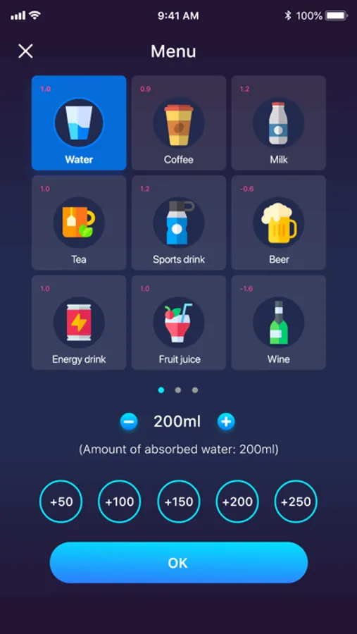 - Apple Health app integration: the app uses HealthKit to record your drink history to the Nutrition section of the Apple Health app.
