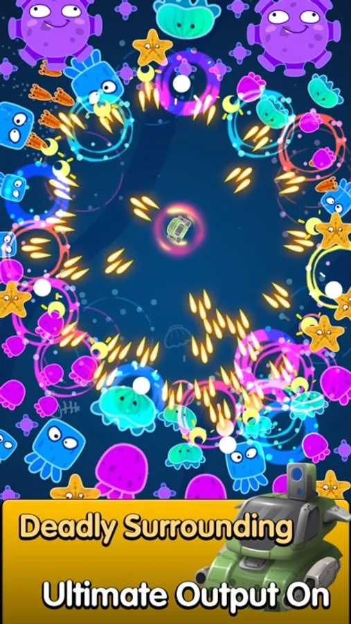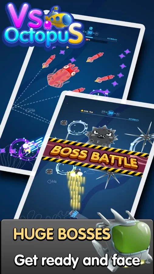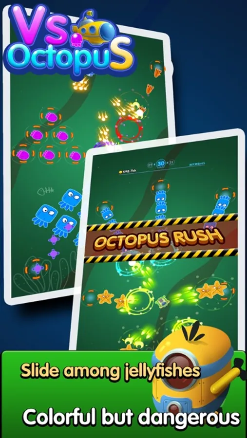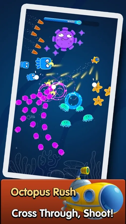 Many underwater creatures floating around to attack your submarine. You have to manipulate your machine to dodge the offense of them and at the same time, counterattack them. Don't be fooled by their cute shape, they are not innocent.