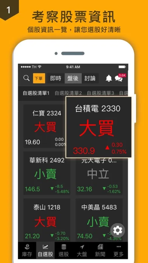 個股資訊讓您挑好股票,簡易下單介面讓您下單輕鬆好上手!