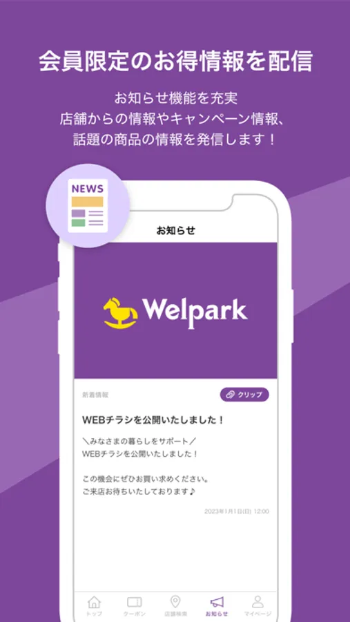 お知らせ機能を充実(クリッピング追加)