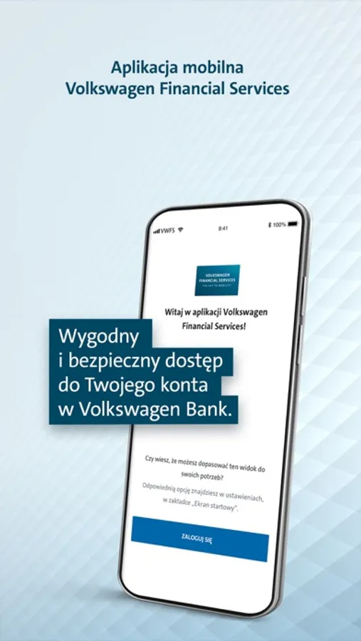 Pobierz najnowszą wersję bezpłatnej aplikacji i zyskaj wygodny dostęp w telefonie do swoich środków finansowych. Aplikacja Volkswagen Bank to szybkie i bezpieczne finanse na co dzień.