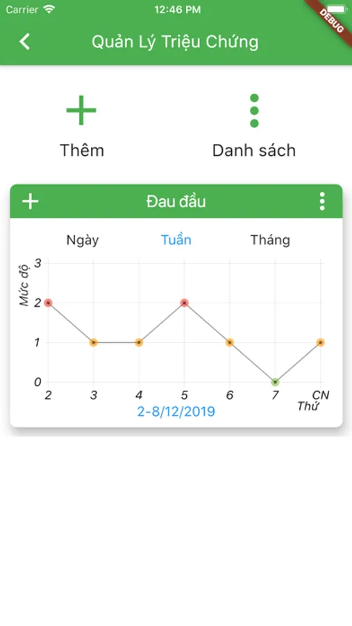 - Nhật ký triệu chứng, cơn đau của bệnh nhân