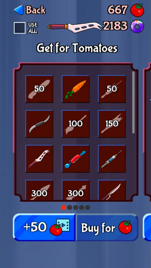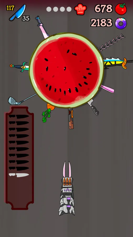 You can adjust our knife games to your style by switching knives, sounds and even the background to the one you like the most. Develop your own strategy of throwing knife and avoid hitting the other blades. To master throwing games you have to improve your reactions and throw very accurate. Collect tomatoes by slashing it with your axe, sword and dual blades, earn donuts and spend it all on new shiny food cutters! Share your high score with friends and challenge them to beat it! Everyone can play this game because it is easy and smooth. Try it and you won’t be able to stop the knife party. One of the funniest knife games - Food Cut - is waiting for you.