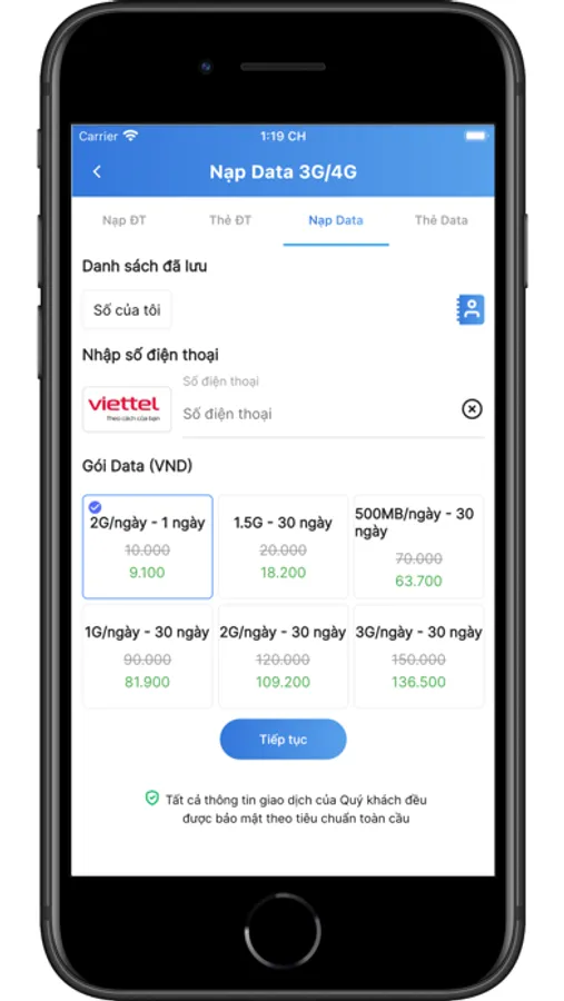 - Nạp data và mua thẻ data 3G/4G dễ dàng.