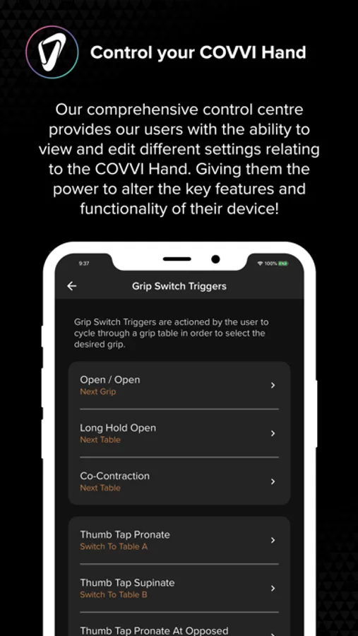The aim of our app is to make users and clinicians’ lives easier when setting up the COVVI Hand.