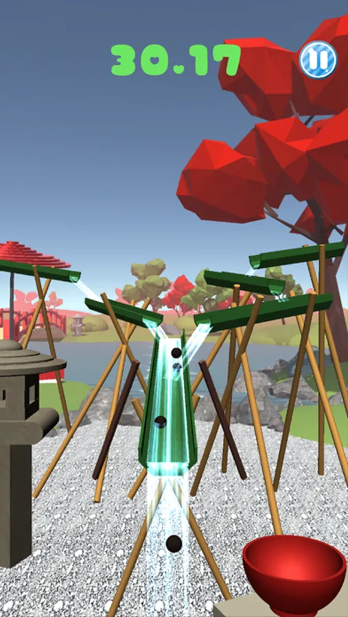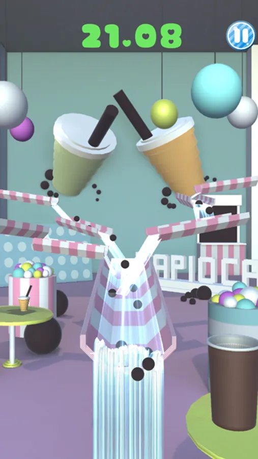 端で流してくるタピオカをつかまえて茶わんに移すとポイント獲得。イージもどは気軽にタップでタピオカゲットだ。