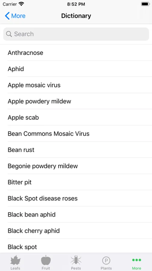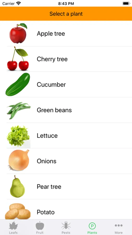In the plants section you can find a list of common diseases and pests for the active plant with specific recommendations.