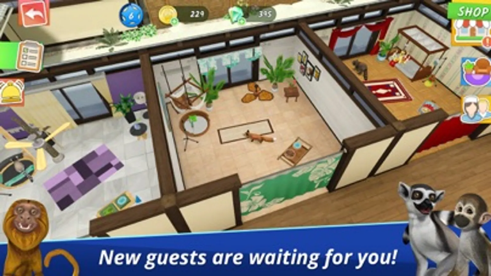 The more patients you nurse back to full health, the more word of your success will get around. Make room for more animals by expanding your patient rooms. Decorate your corridors with new plants, paintings or carpets and place them as you like. Upgrade your outdoor area so you can offer your patients a breathtaking view of a waterfall.