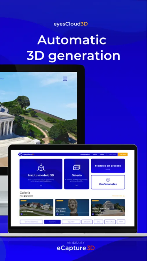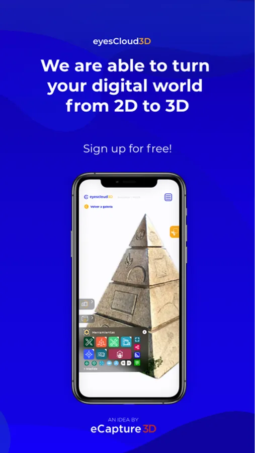 eyesCloud3D is the first tool that generates 3D models without any previous technological knowledge. By using this app, you will be able to turn your digital world from 2D to 3D.