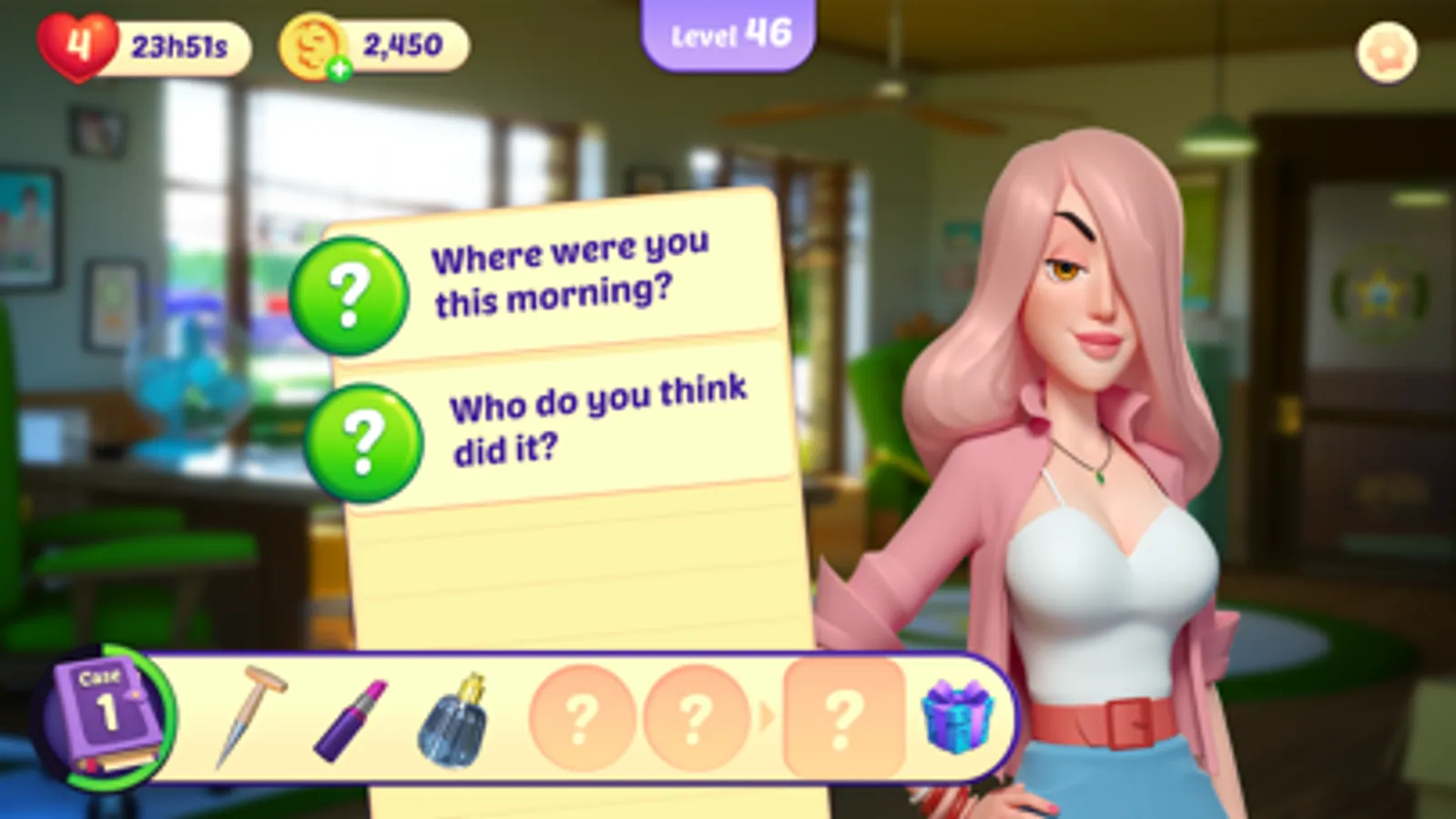 To get to the bottom of these mysterious crimes, it’s going to take a keen eye for detail. Play levels and use a detective’s intuition to unravel the match 3 puzzles, investigate crime scenes and uncover hidden objects to solve this murder mystery. Find clues by solving match three puzzles. Use the clues in this detective game to interrogate suspects, and solve the mystery once and for all!