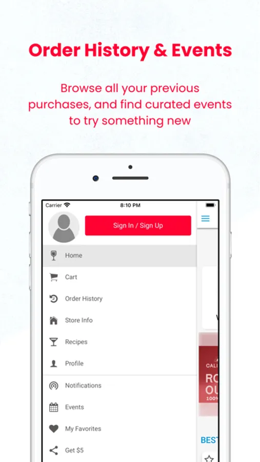 With the App you can browse for the wines & spirits available in the store, and also order a delivery or pickup.