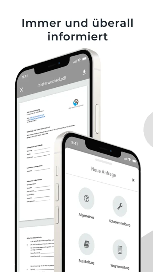• Jederzeit Zugriff auf relevante Dokumente (Mietverträge, Abrechnungen etc.) • Abwicklung von (Schadens-)Meldungen direkt via Smartphone inkl. aktuellem Bearbeitungsstatus