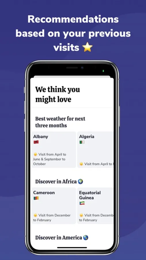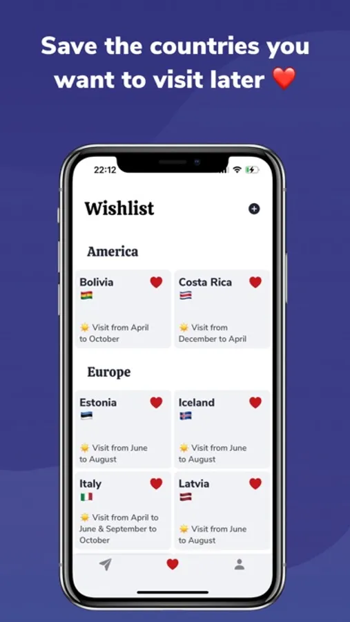 Use Smartrips to keep record of your visited countries and the ones you want to visit. We'll let you know the best time to visit them and get your travel stats.