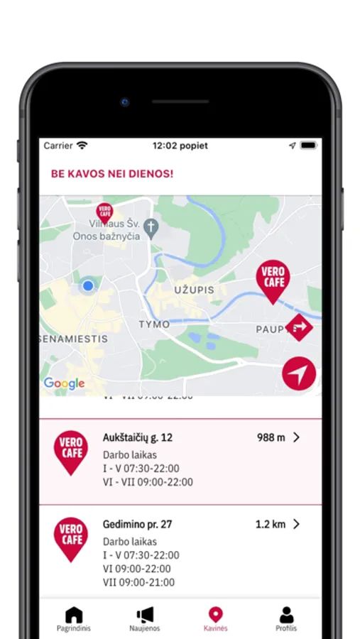 • Sužinosite, kuri VERO CAFE kavinė yra arčiausiai Jūsų, ir kaip ten nuvykti