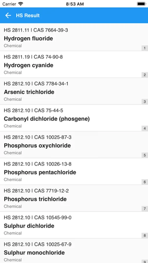 With this tool, you can easily search the information the strategic goods, dual-use goods and other STCE Implementation Guide information. It helps font-line Customs Officers to quickly identify the Chemical substances subject to control through CAS Number, UN Number or HS Code, identify other goods through illustrating images and strategic indicators.