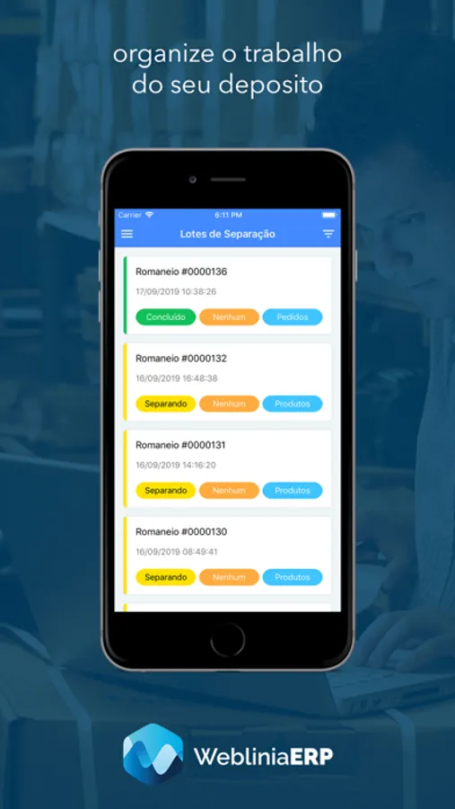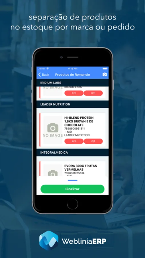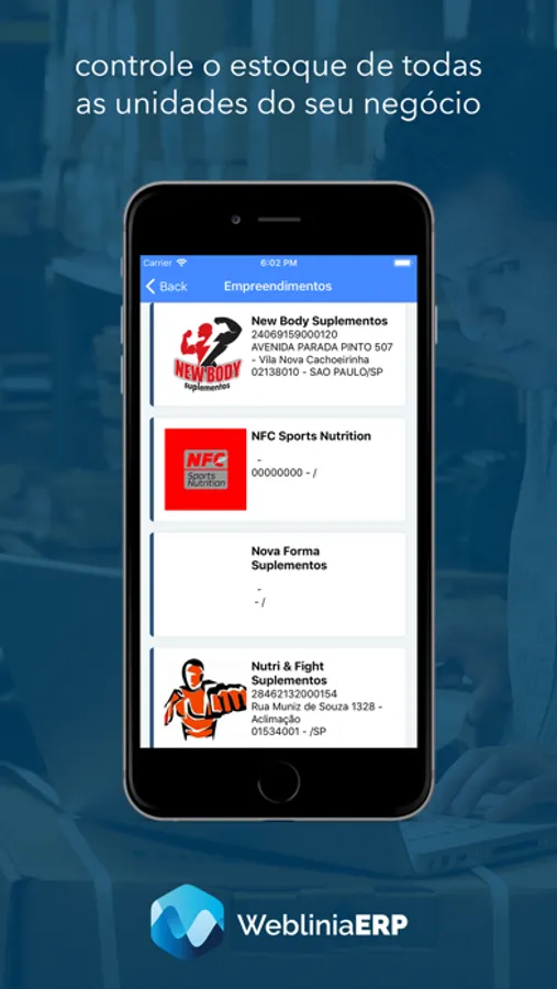 Aplicativo de controle de estoque para usuários do sistema WebliniaERP