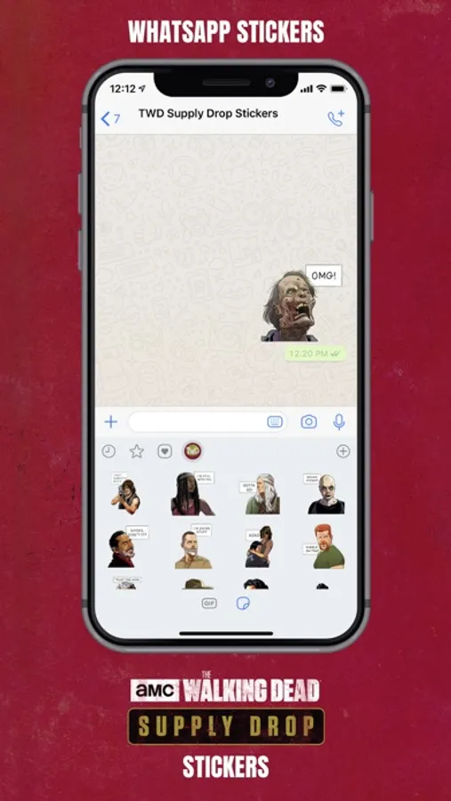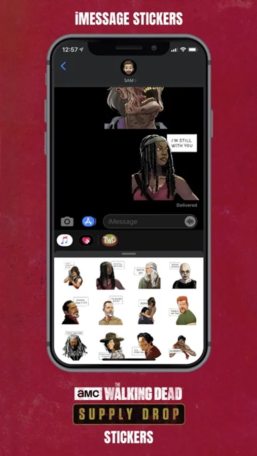 Once you’ve downloaded the sticker pack, you can jump right into any conversation in Messages and WhatsApp. Tap on the App Store icon to the left of the text field. You’ll find all your iMessage apps and sticker packs there, so just scroll to the side until you see the icon with TWD… then start texting away!