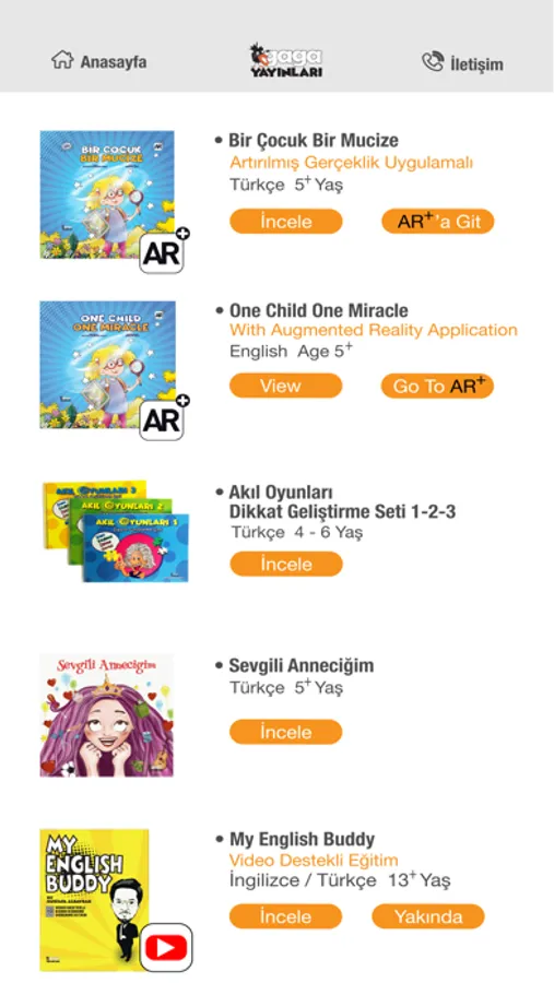 The application is free and it also provides access to AR books along with the other books of the publish house. If you like to view, get information about the books, you can use the app. To purchase books that are on sale, you can again use the app to visit "www.gagayayinlari.com" and buy the book you’d like to.