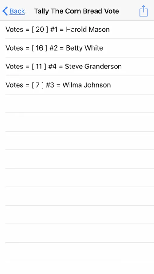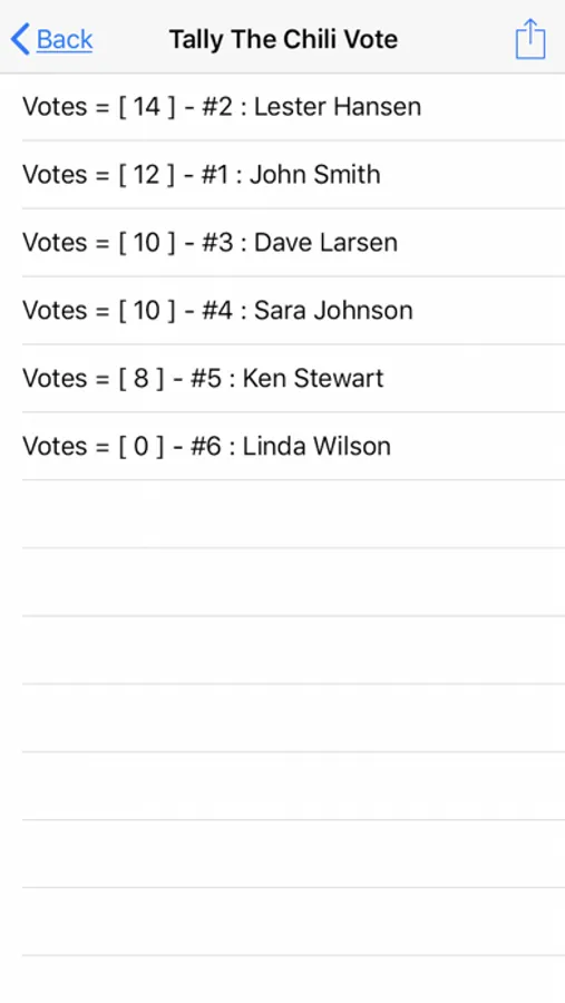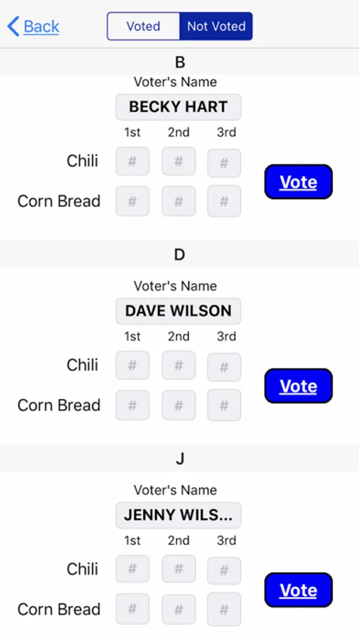 To ensure a fair contest, the app allows you to keep track of all the voters and prevents ballot stuffing. Once a voter clicks the vote button, their results are locked and can only be changed by clicking the reset button for that voter, which removes all their votes and allows them to vote again.