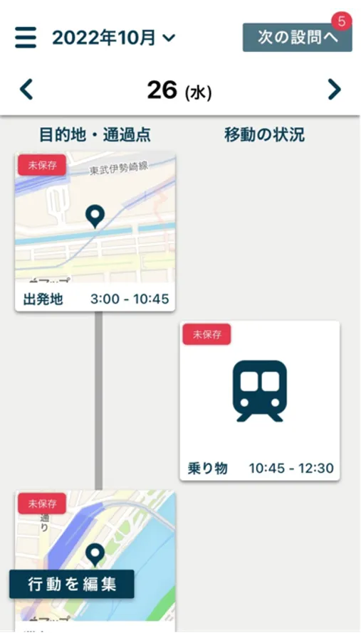 外出前にアプリを起動することで、簡単に移動についての回答ができます。