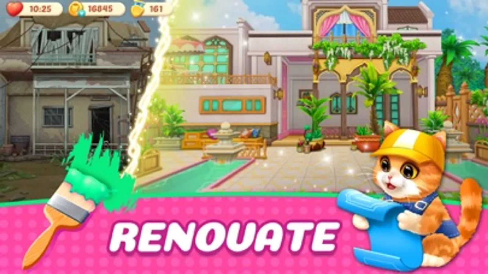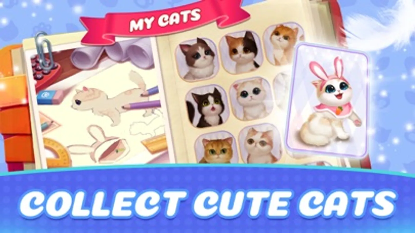 Successful in beating colorful match 3 levels deliver you food, suits for the cats, and materials that you can renovate your mansion. The more chapters you can unlock, the more bond with your sweet kitten! Don’t hesitate, meet your cute kitten pal and start your journey!