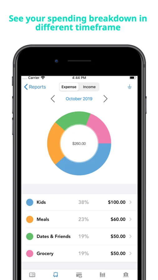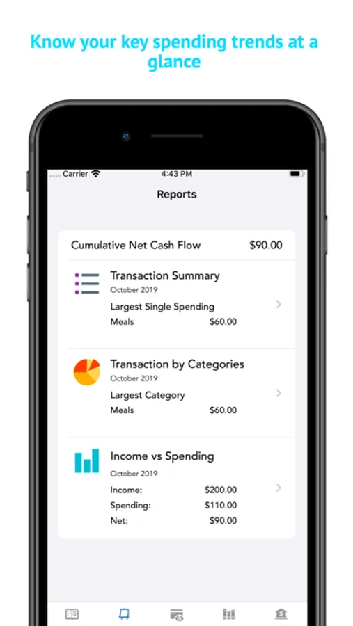 - Track your monthly cashflow, breakdown by category, week, day, month and even income vs expenses!