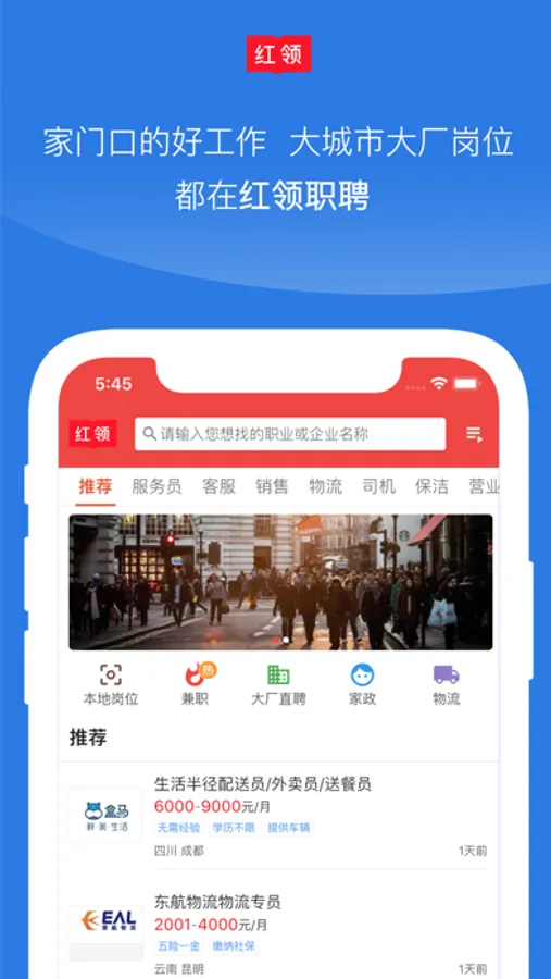致力于帮助4亿红领人群快速、方便、高质匹配工作。