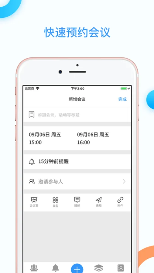 通过建立PAD端、PC端、APP端、等丰富的终端应用,会议管理系统实现会议室的统一管理,个人会议的信息采集,公司会议情况的记录,以及会议的及时通知和一键签到等功能,从而提高办公效率。