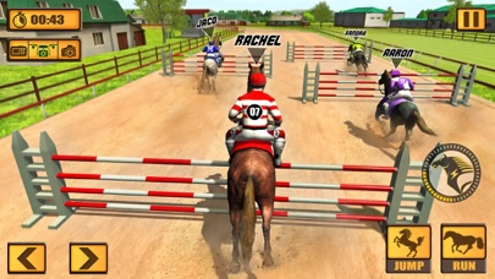 In this cowboy racing game, you power the horse and jump when hurdles come. This horse riding game is a simulator and fast racing challenge game.