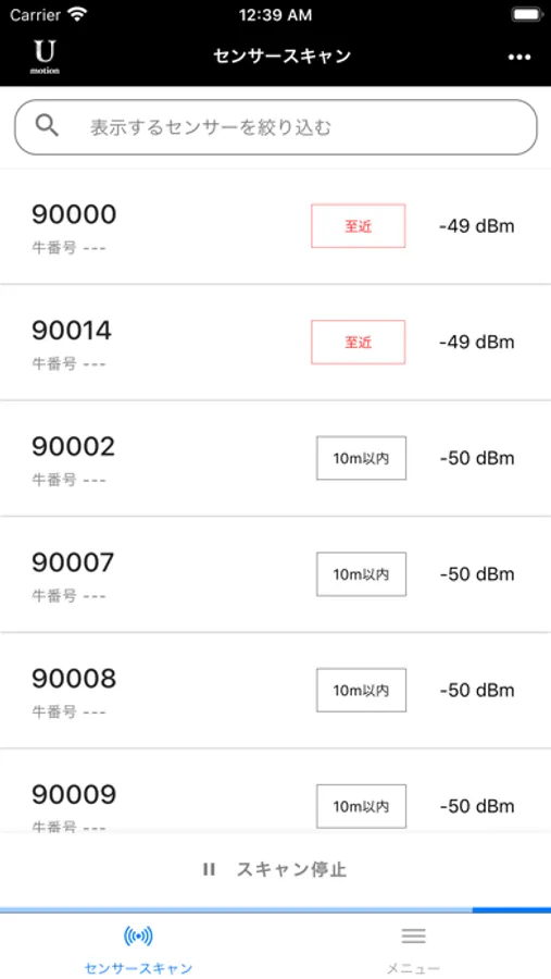 U-motion®は、牛の行動をリアルタイムでモニタリングするサービスです。牛に装着した専用センサーが、採食、飲水、起立、横臥、歩行、反芻などの行動データを24時間収集し続けます。十分な観察時間が確保できない状況でも、集積した膨大なデータを人工知能で解析し、発情兆候や健康状態を検知することで農場管理をサポートします。