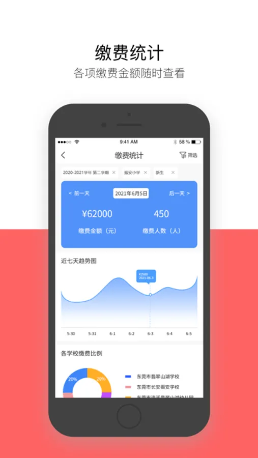 校园收费一手掌握,为校园提供一站式费用收缴服务,提升收费效率,缩短收费周期。