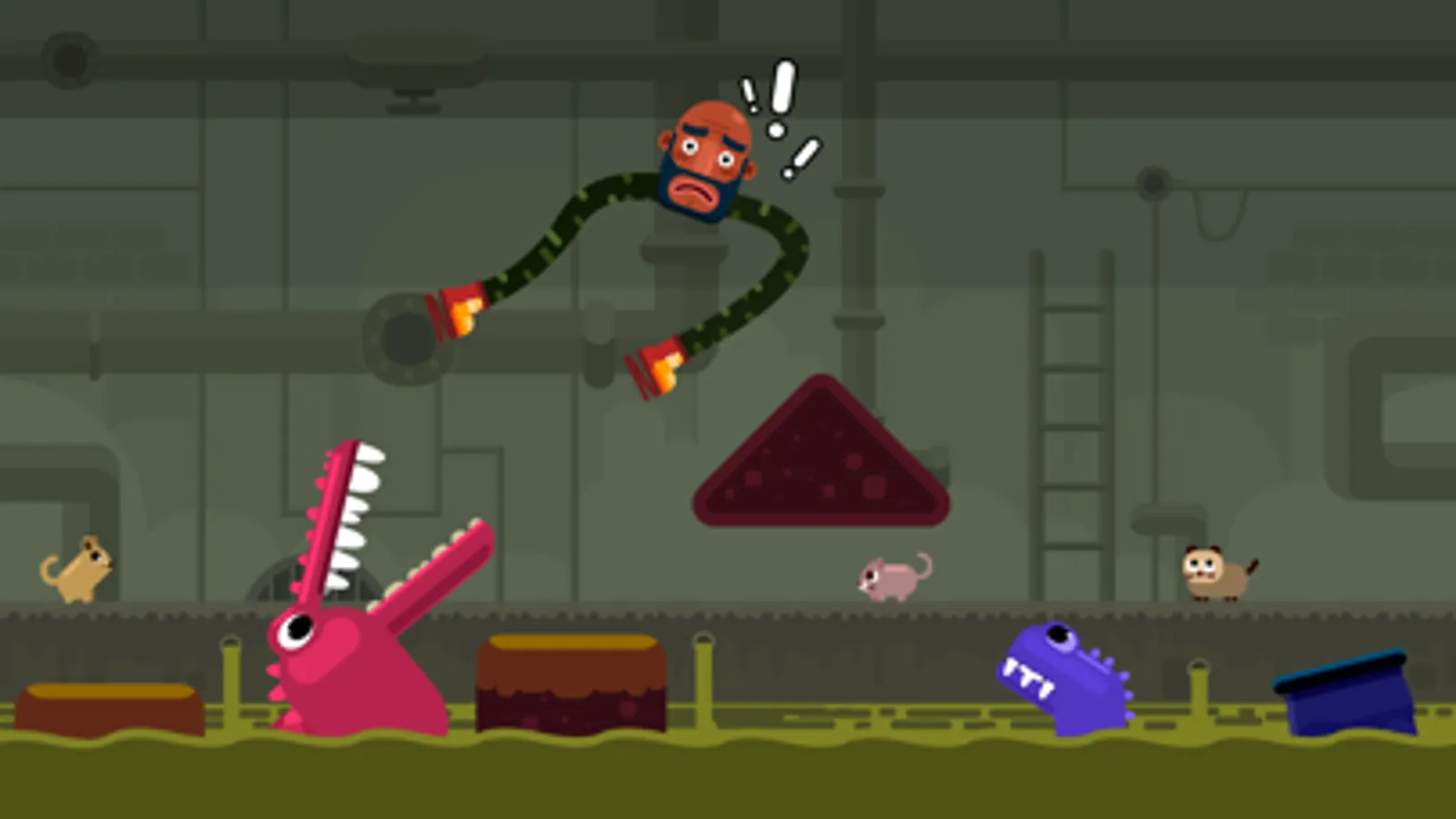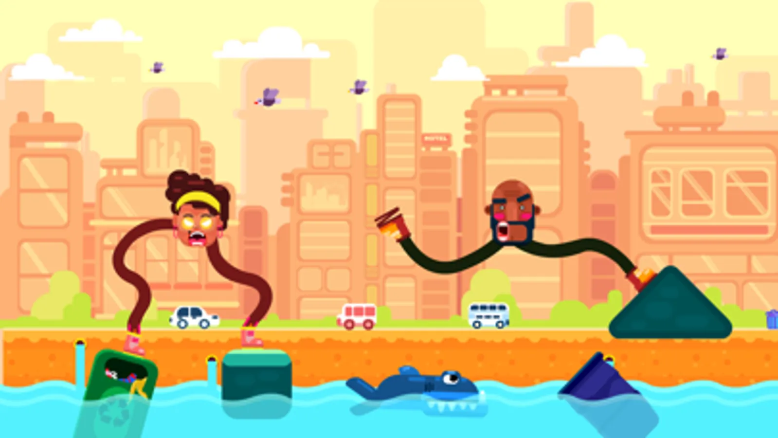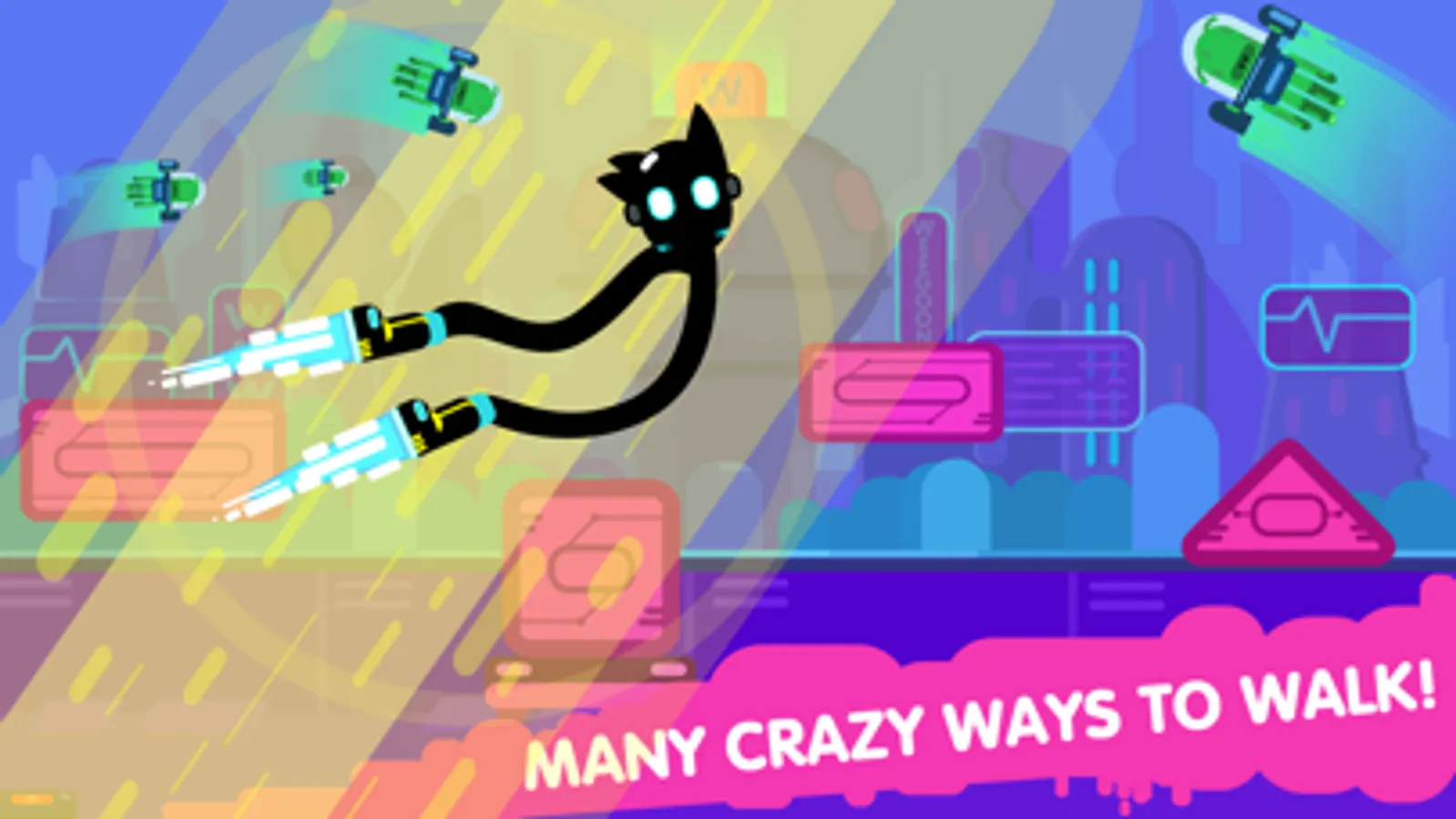 Pull back and release to launch your silly, floppy legs. Walk across short and wide gaps. Just be careful you don't fall in the water!