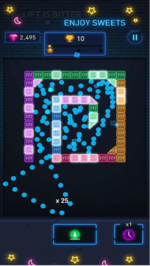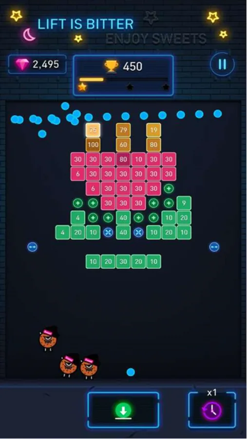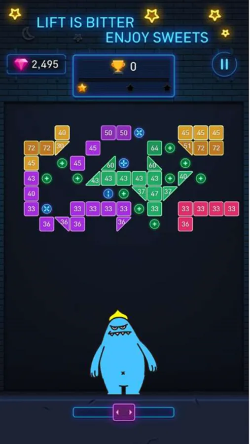 SWEET MONSTER: BRICK BREAKER is a casual game to kill time where players get rid of the neon-colored blocks on the screen and clear the stages.