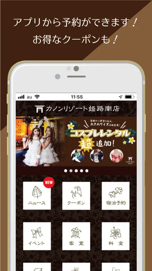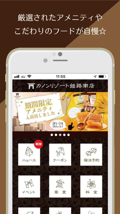 兵庫県姫路市で人気のホテルカノンリゾート姫路南店の公式アプリが誕生しました。アプリで当ホテルの最新情報を随時配信していきます。豪華な露天風呂や岩盤浴は地域NO.1!宿泊予約もアプリで可能。お一人様、女子会、ファミリーも大歓迎! ワンランク上の上質な空間と癒しをご提供致します。アプリから最新情報を配信しております。