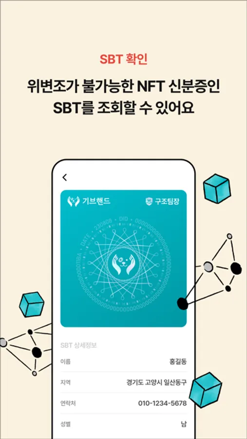 - 위변조가 불가능한 NFT 신분증인 SBT를 조회할 수 있습니다.