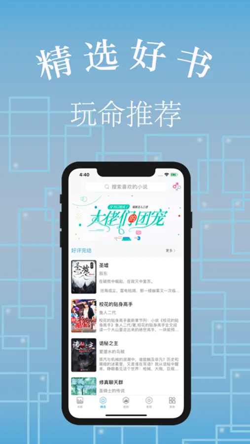 2、【精选】精选各种好书,男生/女生、完结、榜单。各位大神推荐好书。源源不断,我们不怕缺好书,只怕您好书读不完!!!