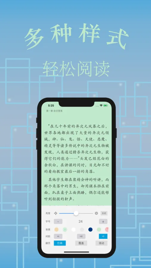 【阅读风格】:任意换字体,换主题,换排版,让你的眼睛享受完美的文字视觉冲击。