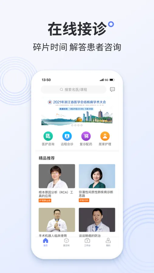 * 集远程会诊、在线课程、临床指南等功能为一体,医生可以随时在手机上管理自己的患者,处理审批查看各类工作安排,让医生的工作更便捷更高效,为患者提供全流程就医服务。