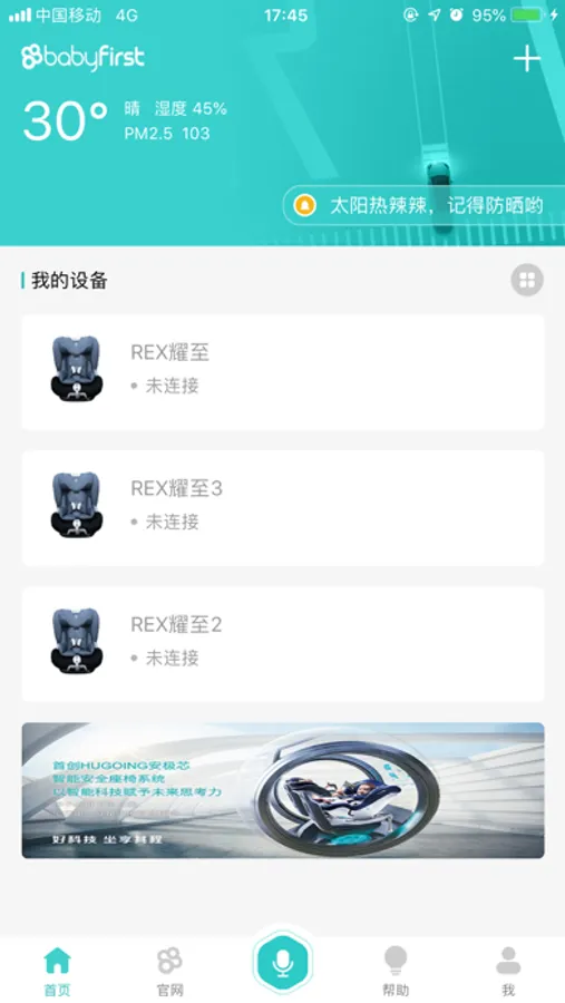 babyfirst APP是连接babyfirst智能儿童安全座椅的手机端应用,您可以直接通过移动设备控制、监测您的babyfirst产品,并且可以根据告警记录数据总结,便于后续优化。