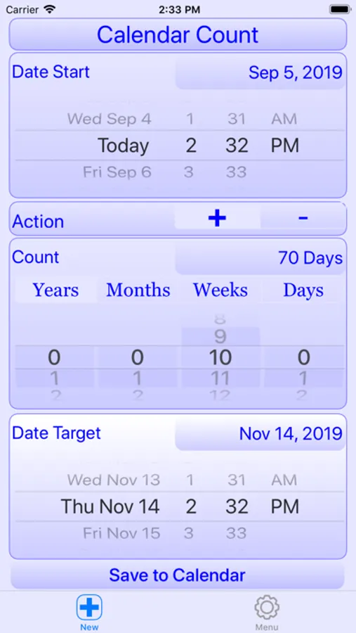 Calendar Counter is designed to be easy to use and the screens are designed to be easy to read.