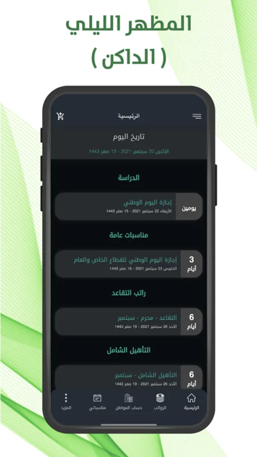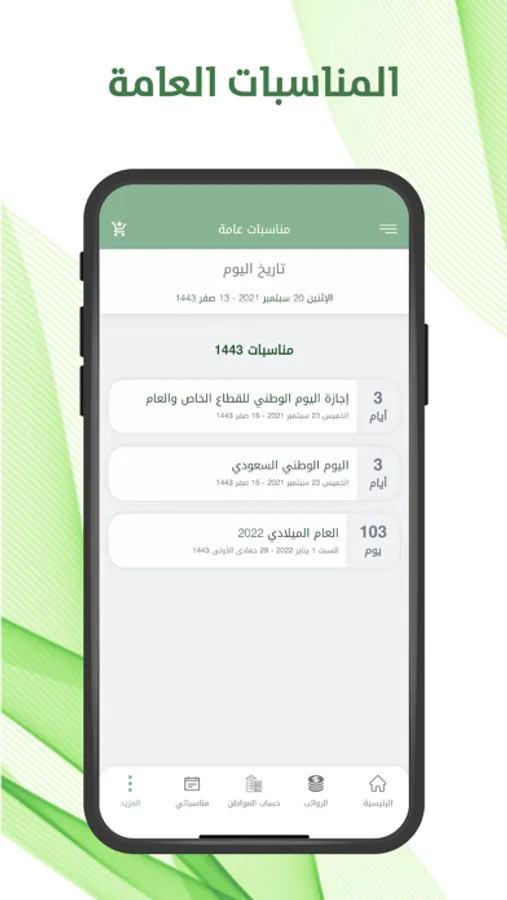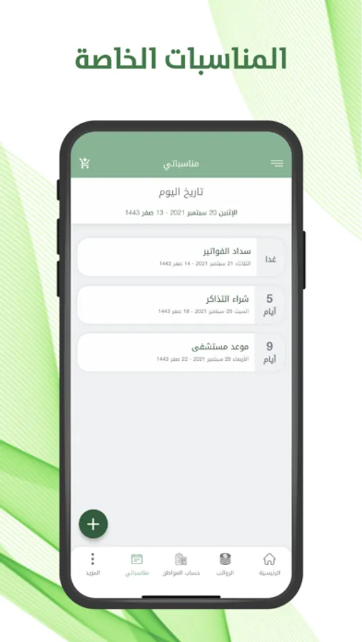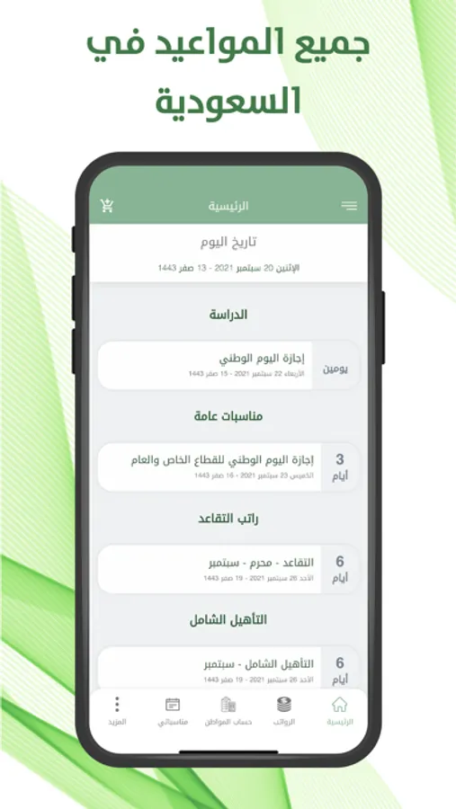 تطبيق تقويم السعودية المجاني للتذكير بجميع المناسبات في السعودية بالتاريخ الهجري والميلادي، على سبيل المثال: