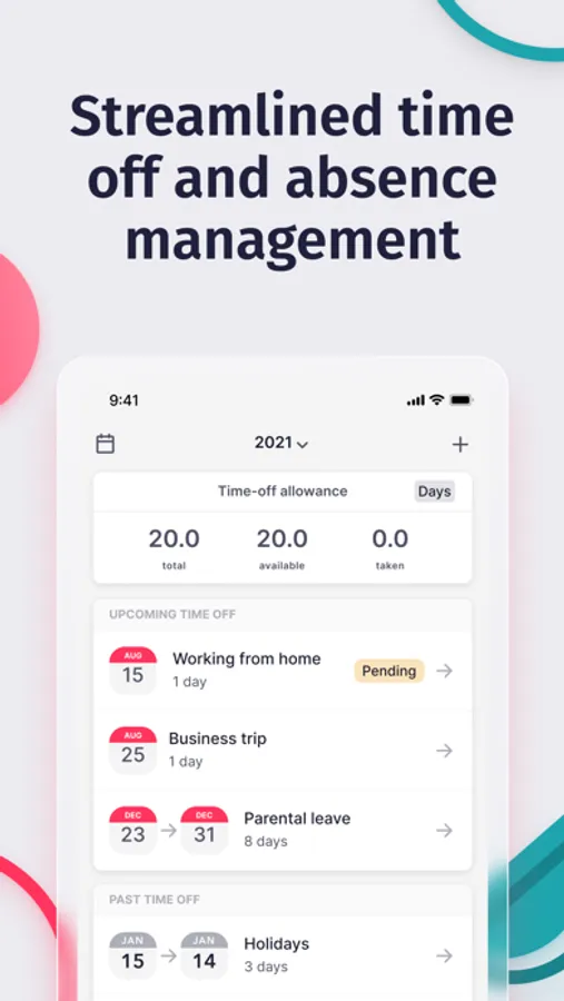 Employees can send time off requests with the touch of a button and administrators can approve or reject them just as quickly.