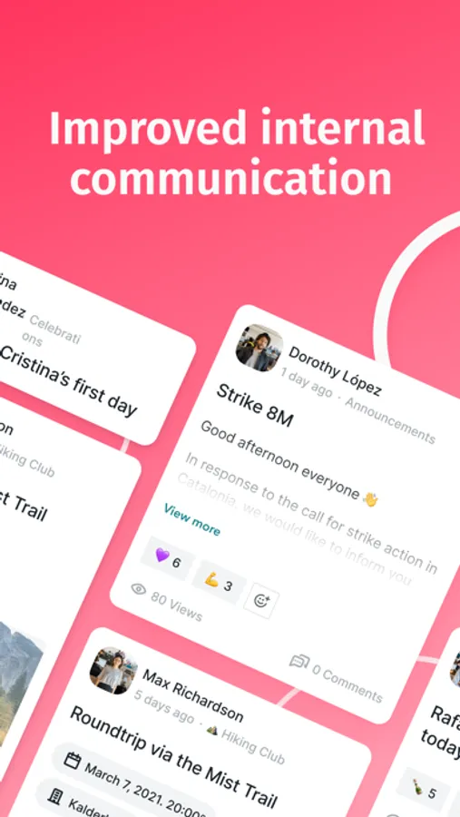 Stay on top of the most recent company announcements, birthdays, work anniversaries, new hires, and events. Join and participate in different communities within your organization.