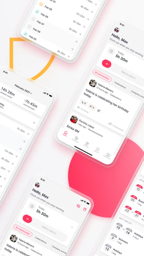 Our app for employees and administrators offers quick and easy access to all these functionalities. We have different options so that employees can easily clock in and communication tools that bring teams closer together than ever before.