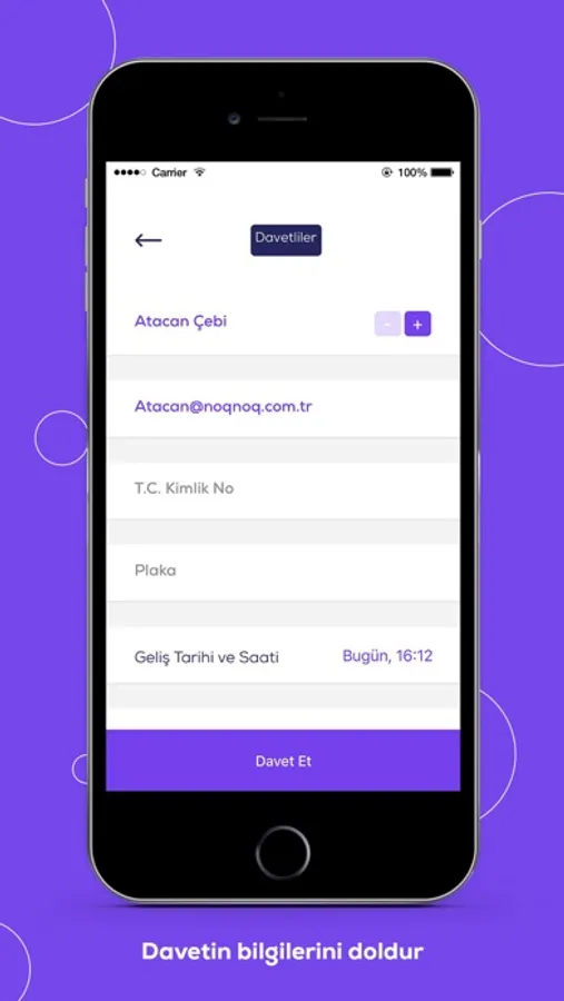 İndirin ve sadece birkaç parmak hareketiyle ileri bir tarihe davet oluşturun. Noqnoq bu davetlerden binanızın danışmasını ve güvenliği anında haberdar etsin, ziyaretçileriniz vakit kaybetmeden size ulaşsın.
