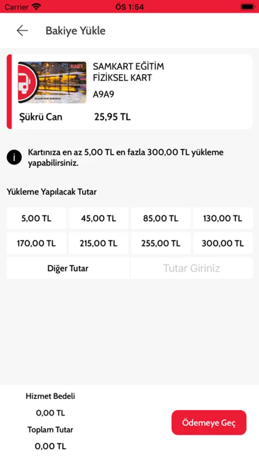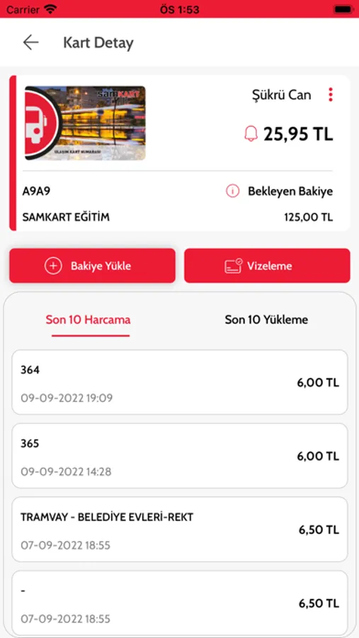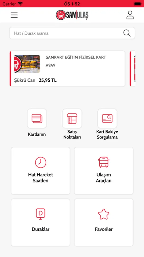 SamUlaş uygulamasında Sanal kart oluşturarak toplu ulaşım araçları kullanılabilir.