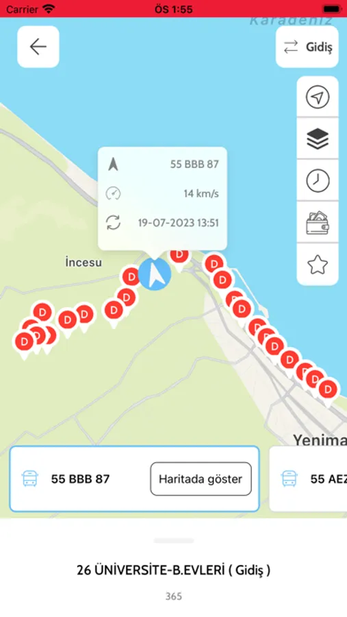 Toplu ulaşım araç bilgileri, durak bilgileri, sefer bilgileri görüntülenir, Şehir toplu taşıma kartlarına bakiye yüklenebilir ve görüntülenebilir.