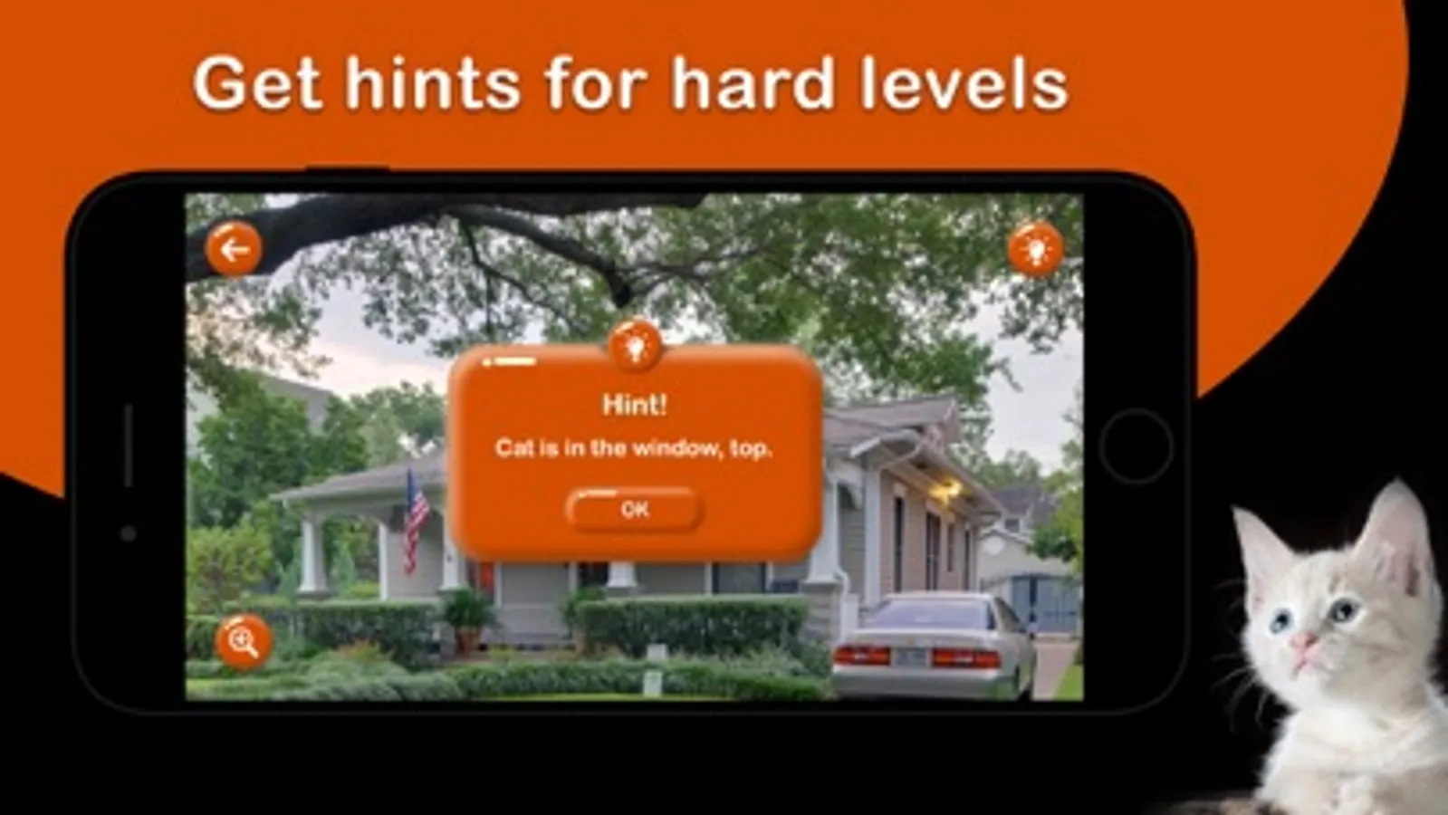 There is hint option also available which can help you and make easy to find a cat in the images.
