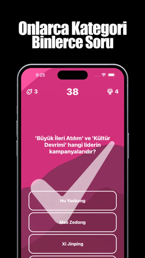 • Eğlenirken öğrenin! Binlerce soruyla dolu bu uygulama, tarih, coğrafya, sinema, film, genel kültür, spor, bilim ve sanat gibi çeşitli konularda sizi zorlayacak ve bilgi seviyenizi artıracak!
